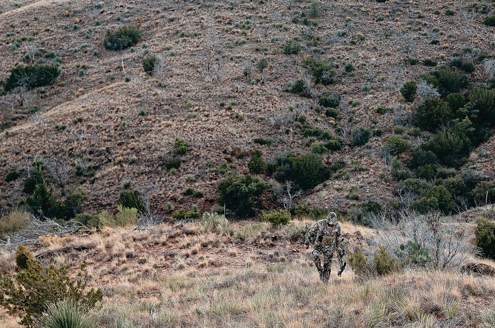Another great solution to this is to just run a floorless shelter. If you do though, I’d suggest bringing a piece of Tyvek to put under your sleeping pad. This will help protect the pad so you don’t end up with a patching job in your near future or, unfortunately, sleeping on the cold ground. Yes, it can get cold during December and January in Arizona. Nighttime temps usually sit around 20-30 degrees, but I’ve also slept in 10-degree weather during this time. Let your sleeping system be a reflection of that. A 20-degree quilt and sleeping pad with an R-Value of at least 3.0 have done me well. If it’s going to be colder, I’ll pack along a liner and sleep in all of my clothes. Let’s get back to the hunt now!