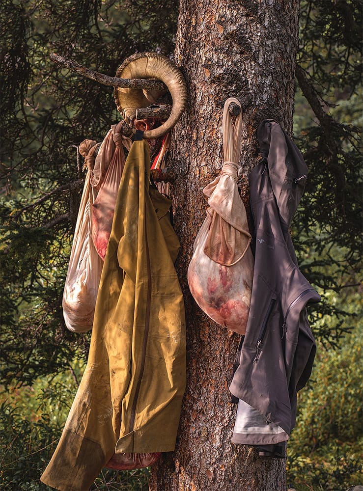 All the years of waiting and preparing and the money and time spent were culminating into this one moment, and I was losing focus, so I repeated my mantra in my head. “Ease into the trigger, aim small, miss small, aim small, miss small…” Just then, the ram took notice of us and stood up. I immediately got behind my scope, placed my 550 hash mark behind his shoulder, and eased the trigger without thinking.