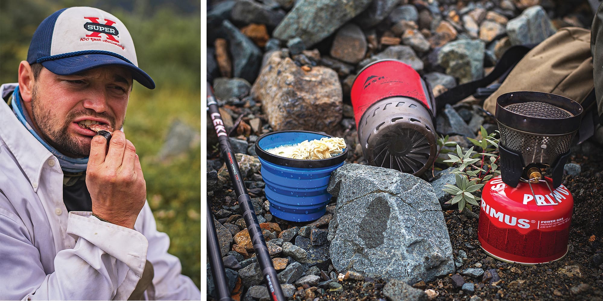 Austin had packed seasoning, and nothing tasted better than roasted tenderloin over an open fire in the Alaskan wilderness. One of my favorite treats is deer tongue, and I was surprised that none of the guys had tried a sheep tongue, so I boiled that in Austin's Jet Boil while we cooked some femurs by the fire. I skinned the tongue, sliced it thin, and topped it with marrow from the femurs. Everyone agreed they had never tasted anything finer!