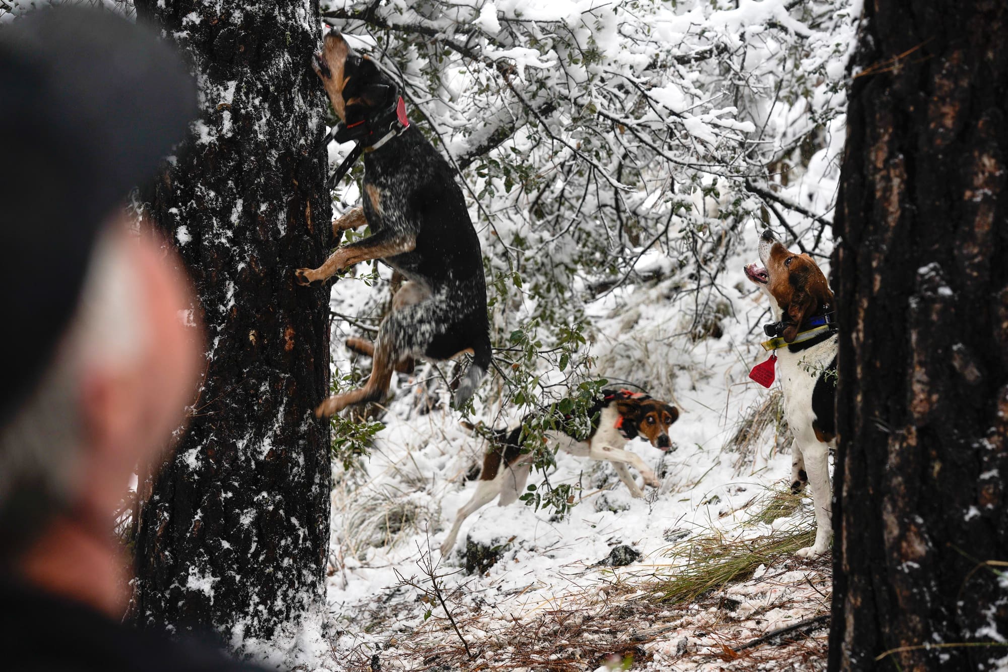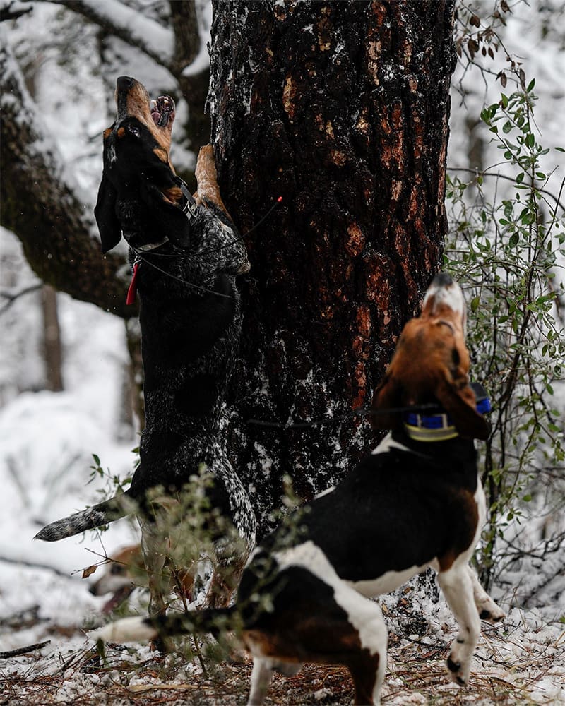 So, we stayed calm. I sat down and took off my puffy jacket with steam pouring out of it. I got back to a comfortable temp and sat with Floyd for what felt like a week, just watching, listening, encouraging the dogs, and learning just how special his relationship with both the dogs and their quarry is.