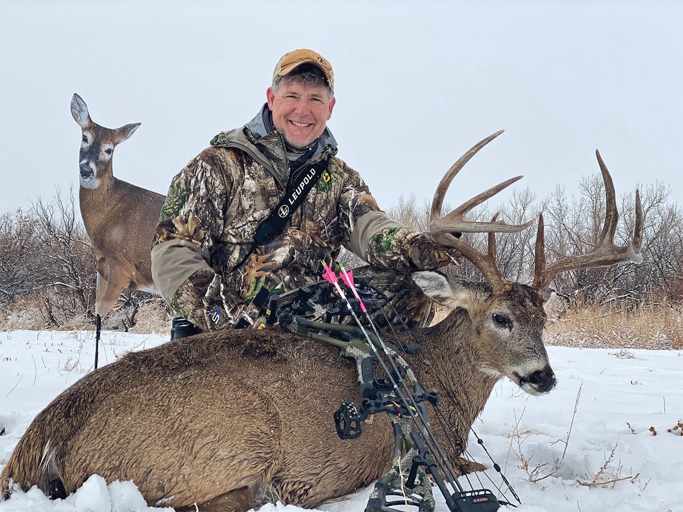 As lady luck would have it, the first deer to show up was a nice buck. He was angling past the stand and I had to react quickly to get a shot before my short window of opportunity was gone. I drew quickly, released, and was rewarded with the solid sound of a good hit. The deer bolted off only to drop a short distance away. The backdrop of the Rocky Mountains and a beautiful, big-bodied whitetail at about 5,000 feet of elevation made this hunt stand out to me.