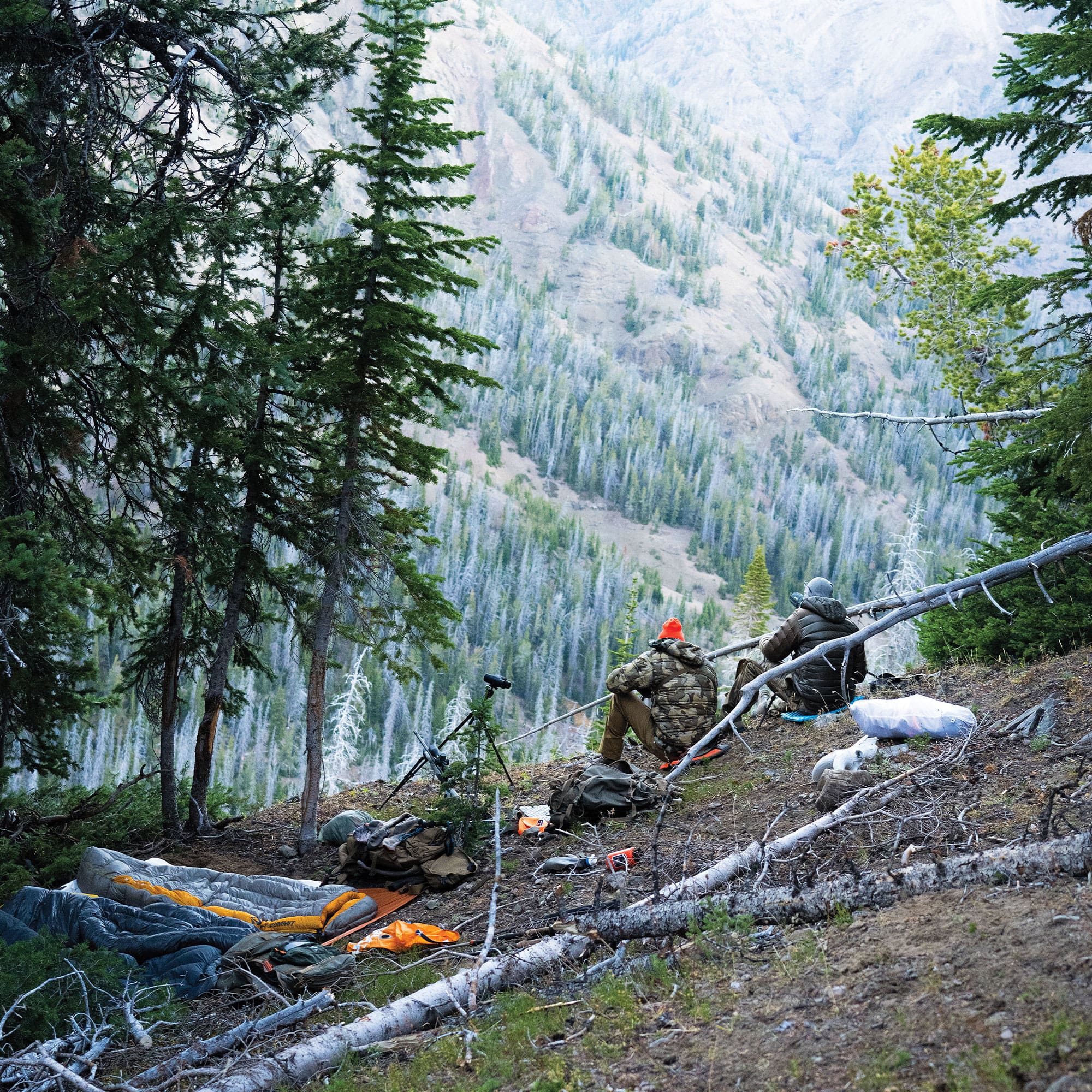 By the time we broke camp, they had vanished. We slowly moved closer and picked apart the mountain all day with no luck. Then, just as the sun set, Landon hissed, “I’ve got sheep!” They were much lower than expected, moving through the timber. I scrambled to set up behind the rifle… and missed. For the first time in my life, I had missed a big game animal. Twice. With a sheep tag, nonetheless! My heart sank.