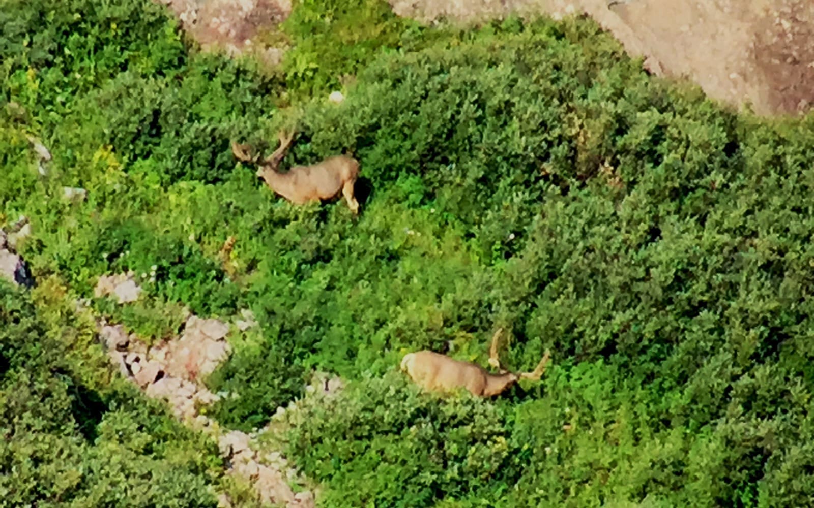 As I got close, I heard hooves thump the ground and saw the rumps of the two bucks trot uphill through the willows. I had no idea that the branches of the willows were thin enough that I could get busted, but it had happened.
