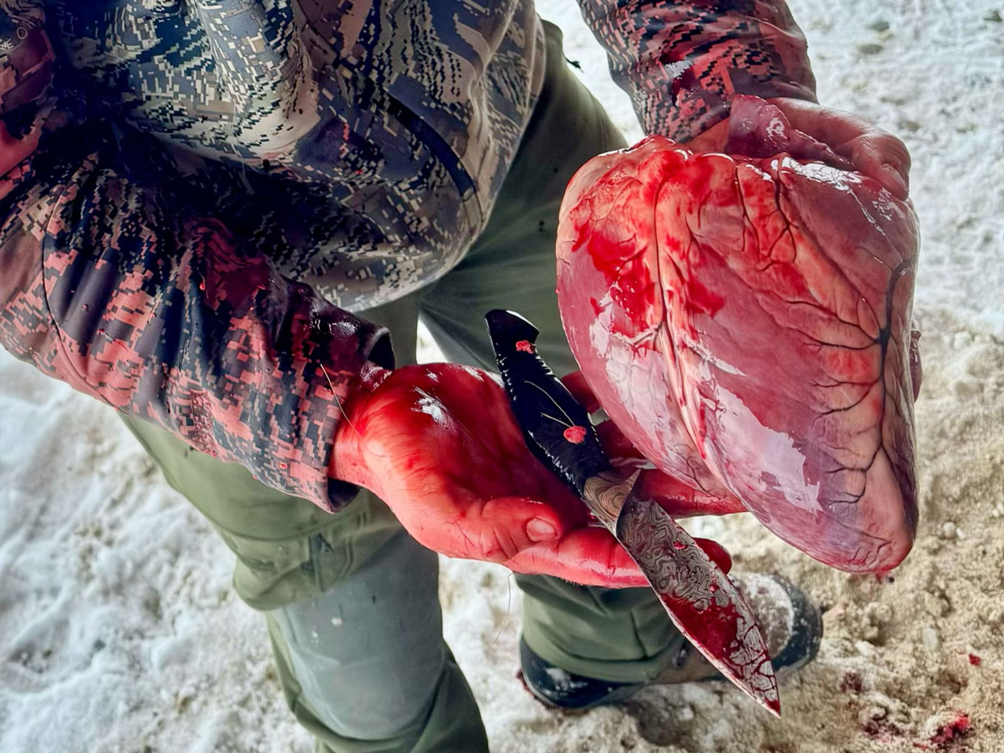 I have done my best to try out many different knives from different makers when I’m taking apart animals. I’ve had the opportunity to help take apart about a dozen elk and deer in the last three years between my own harvests and those of friends. What I’ve found is that edge shape, thickness, grind style, edge length, blade steel, handle shape, and material choice all affect performance. But I believe that the shape of the knife’s tip and the thickness of the edge are the two factors that change the way the knife feels to cut with the most, and good steel means it will stay that way for a long time.