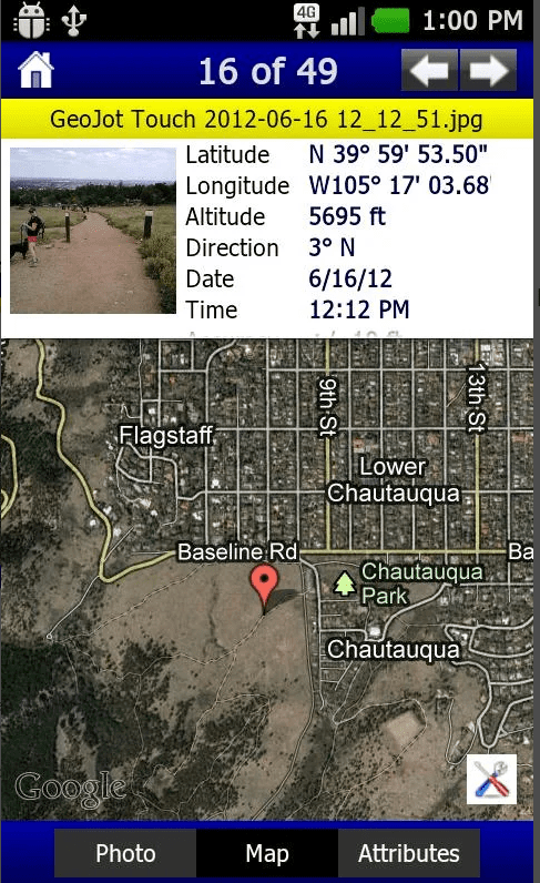 For those who want a little more data, and like the idea of geotagging, try the program GeoJot. It has very well built apps for Android and iPhone that allow you to turn that handheld device into a real handheld computer! GeoJot is the “Cadillac” of geotagging software.