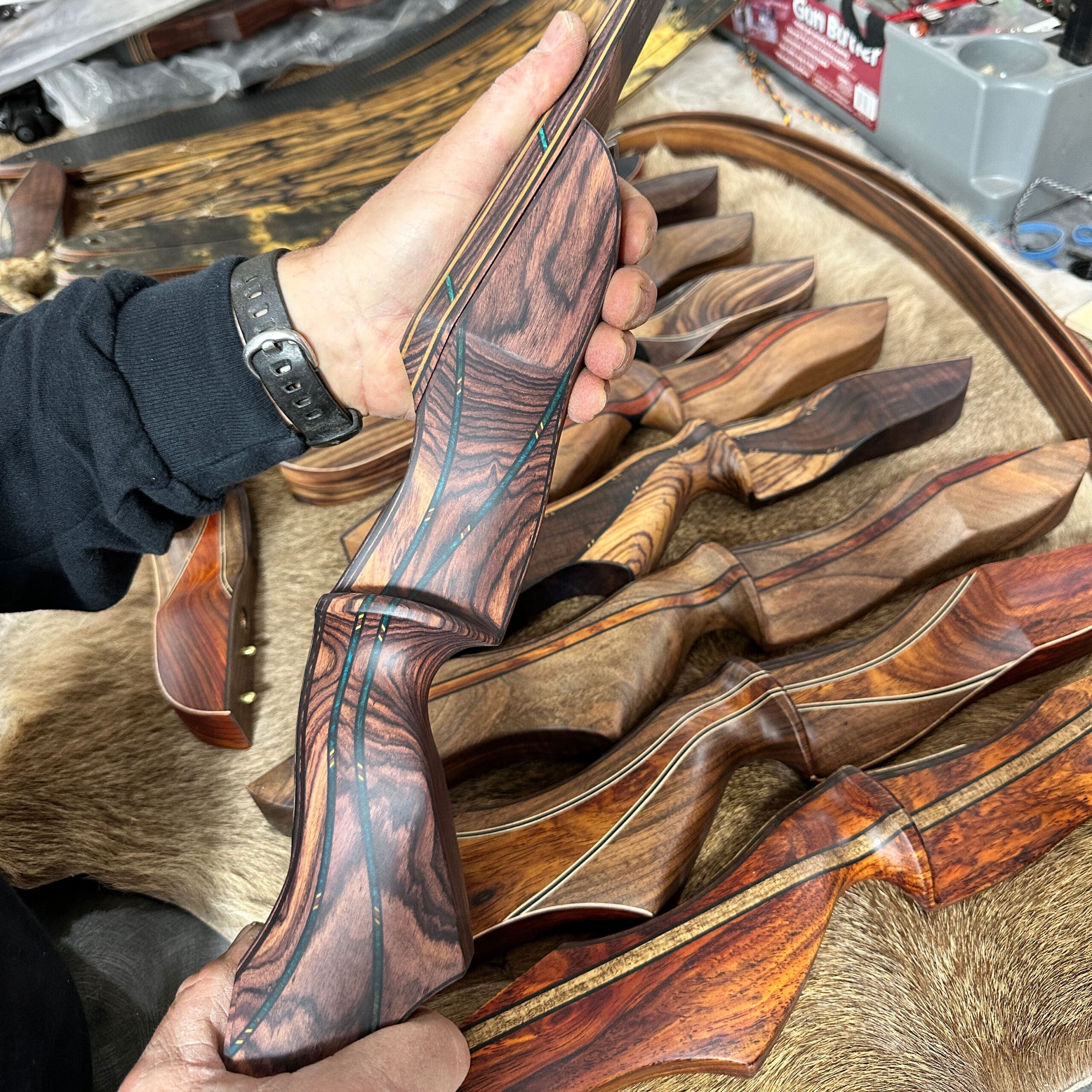 I’ve carved out a bit of a niche, becoming known for having some of the most unique and highly-figured woods that God has created. One of my favorite parts of building bows is sourcing the woods from around the world and then individually selecting the pieces for each customer’s build. Though the canvas is somewhat limited, I think one would have a hard time not acknowledging that they are not functional art pieces.