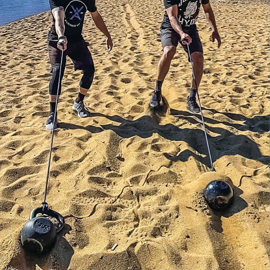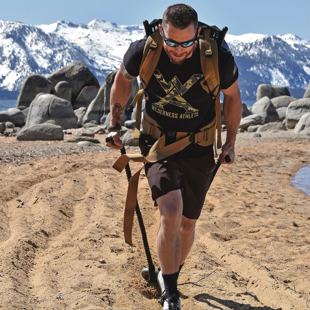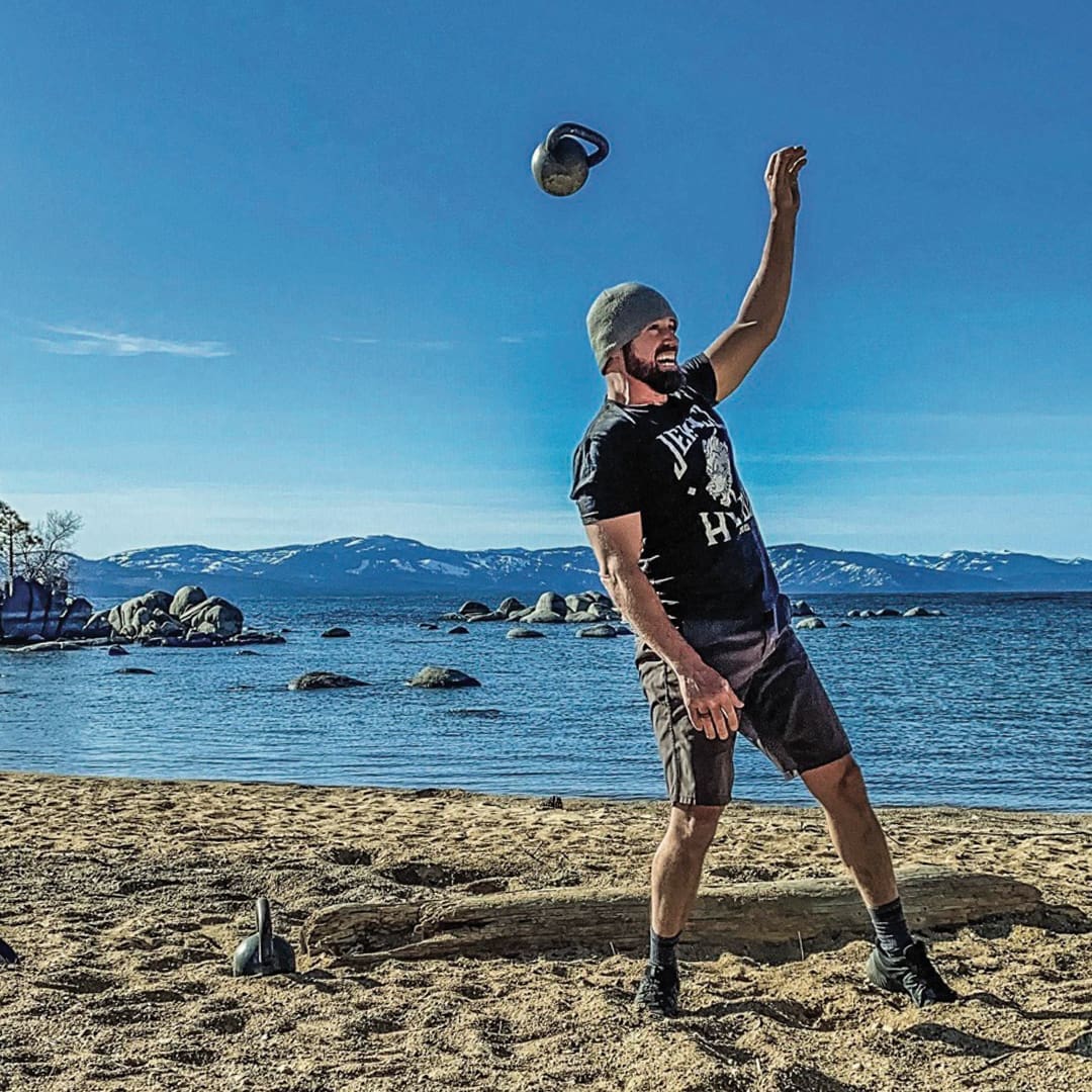 One of my favorite ways to work out is to make the short trip up the Sierra Nevada mountains and train on the sandy beaches of Lake Tahoe. Sand provides a different type of resistance that challenges your muscles. The unstable and constantly-moving sand beneath your feet engages your small stabilizer muscles, incorporates more muscle fiber recruitment, helps improve your balance and joint stability, and reduces the risk of injury. The unforgiving terrain of the West constantly leaves us battling uneven surfaces, unsure footing, and vast elevation changes.