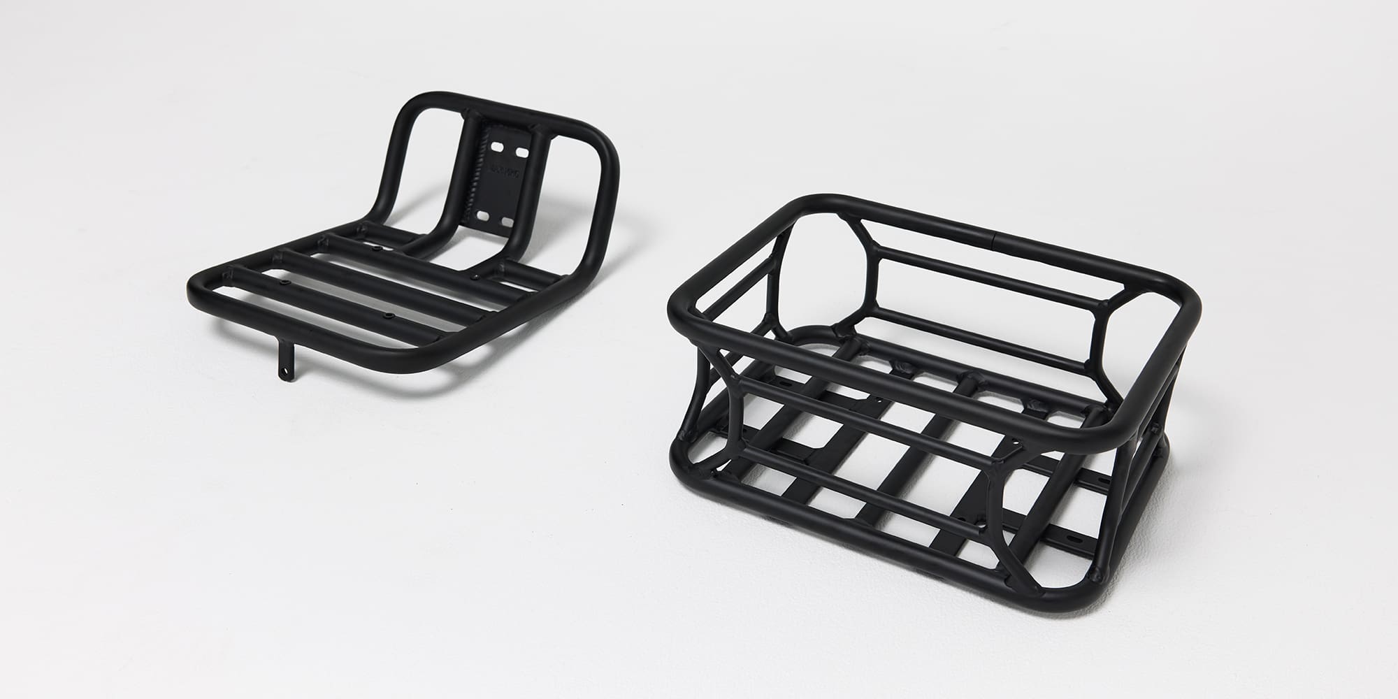 Do you want to double your battery capacity and go twice as far? Easy. Bakcou has designed the rear rack to accommodate a quick-release 20 amp-hour battery pack. That is a total of 40 amp-hours of capacity! It snaps in and still gives you a rack to use for panniers or other accessories. Want a large and rigid basket to store and transport things? No problem. The SD has that covered. You can even install a rack on the front of the bike over the front tire.