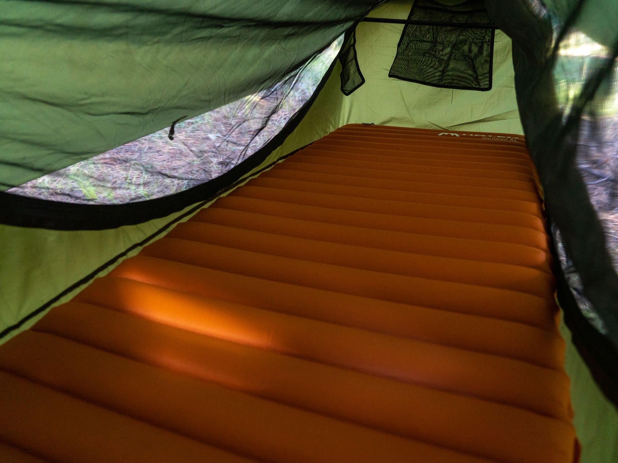 I typically use a Klymit Klymaloft XL pad everywhere I go. It’s supremely comfortable and not too heavy. It fit so well that you’d have thought it was built in. I climbed inside the Haven, and I almost immediately fell asleep. Believe me when I tell you that it is an absurdly nice place to be. There is more room in it than in my one-man bathtub-style backpacking tent, and the zippers and gear pockets are all in exactly the right places.