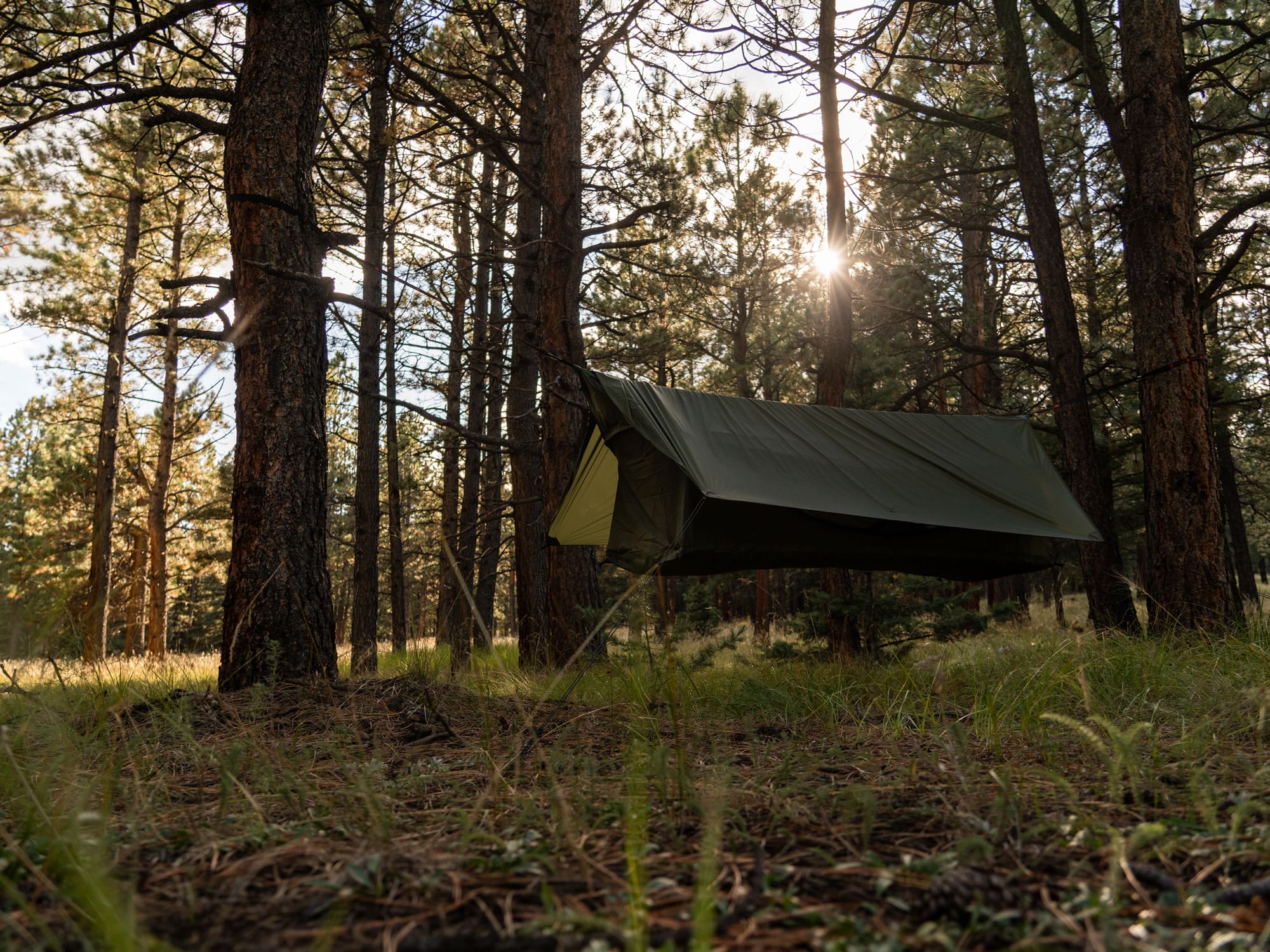 Every year during my search, I’ve always taken a quick glance, but not a hard look, at a hammock setup. I’ve always loved the idea of my entire camp bed fitting into a tiny drawstring bag. However, everyone knows the drawbacks of hammock camping. Hammocks are finicky, they flip over, you have to have a decent set of trees to hang one on, and they roll you up like a burrito. Being in a banana position is great for a nap, but an all-night foldup just doesn’t do it for me.