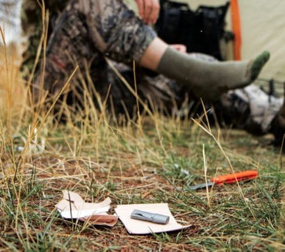Pack multiple pairs (I usually pack three on a backpack hunt), especially if your feet sweat much. Being able to rotate socks on a daily basis really helps keep the inside of your boots drier. I usually change out a pair each night before bed, and if it’s warm enough I sleep with no socks to air my feet out well. If we’ll be coming back to a camp, I’ll set the socks I used on a branch to dry out while I’m out hunting. If you’re camped next to a creek, then rinse the used pair out real well before hanging them to dry.